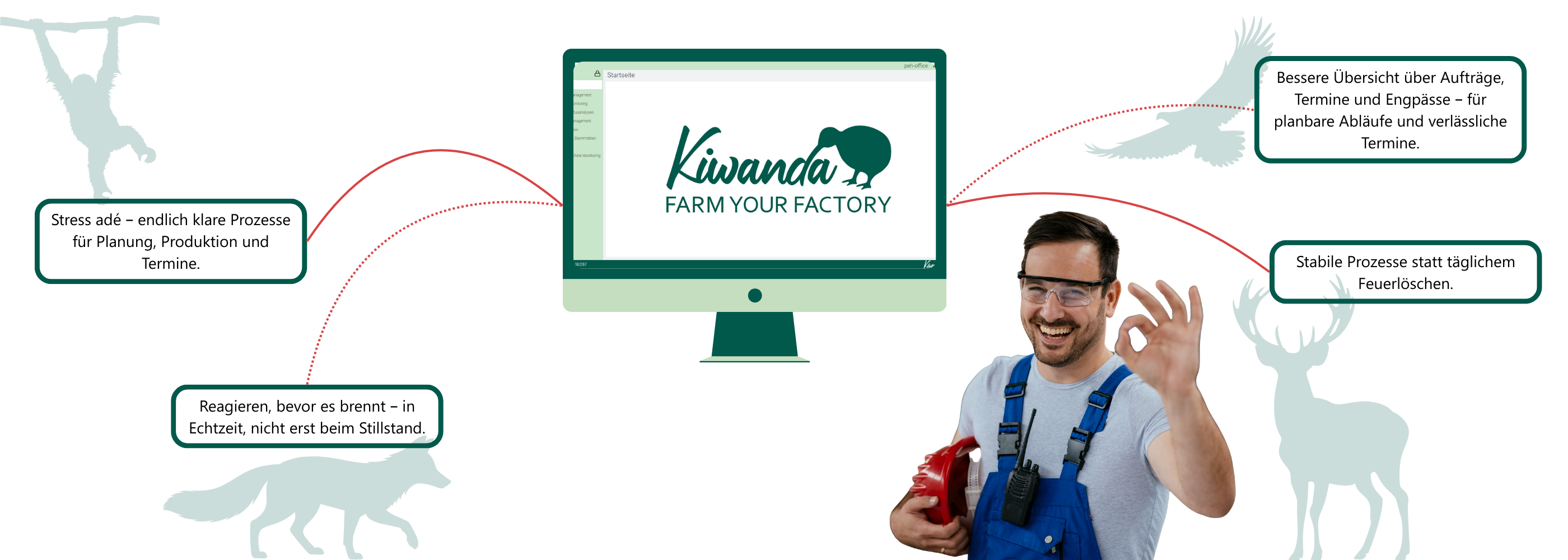 Kiwanda wurde speziell für kleine und mittelständische Fertigungsunternehmen entwickelt. Der Fokus liegt auf klaren Prozessen, schneller Einführung und einer einfachen Integration in bestehende IT-Strukturen. Heute unterstützt Kiwanda Unternehmen mit unterschiedlichen Produktionsmodellen bei Planung, Ressourcensteuerung und transparenter Prozessführung im Tagesgeschäft.