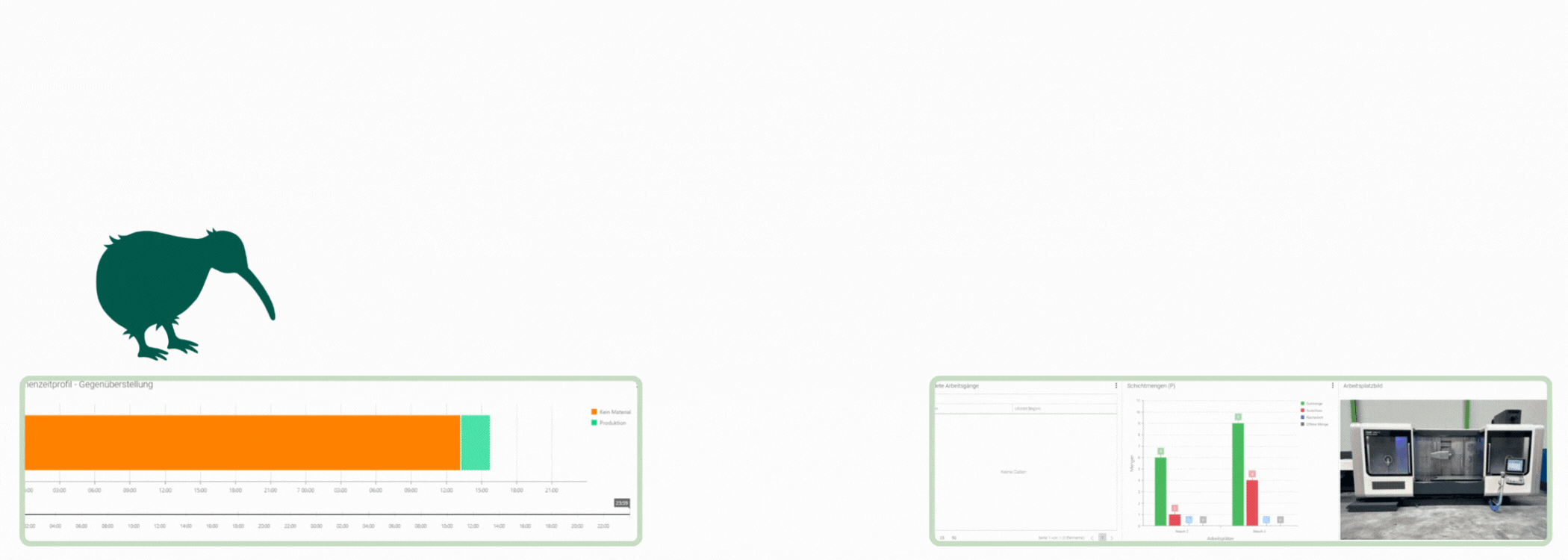 Mit Kiwanda digitalisieren Sie Ihre Fertigung an Maschinen, Arbeitsplätzen und Prozessen – in Echtzeit, übersichtlich und praxisnah. Behalten Sie Maschinenzustände, Auslastung und Buchungen jederzeit im Blick, erkennen Sie Engpässe frühzeitig und steigern Sie Ihre Gesamtanlageneffektivität (OEE) messbar. Detaillierte Maschinenhistorien, intelligente Statusanalysen und zentrale Dashboards ermöglichen fundierte Entscheidungen auf Basis belastbarer Produktionsdaten.